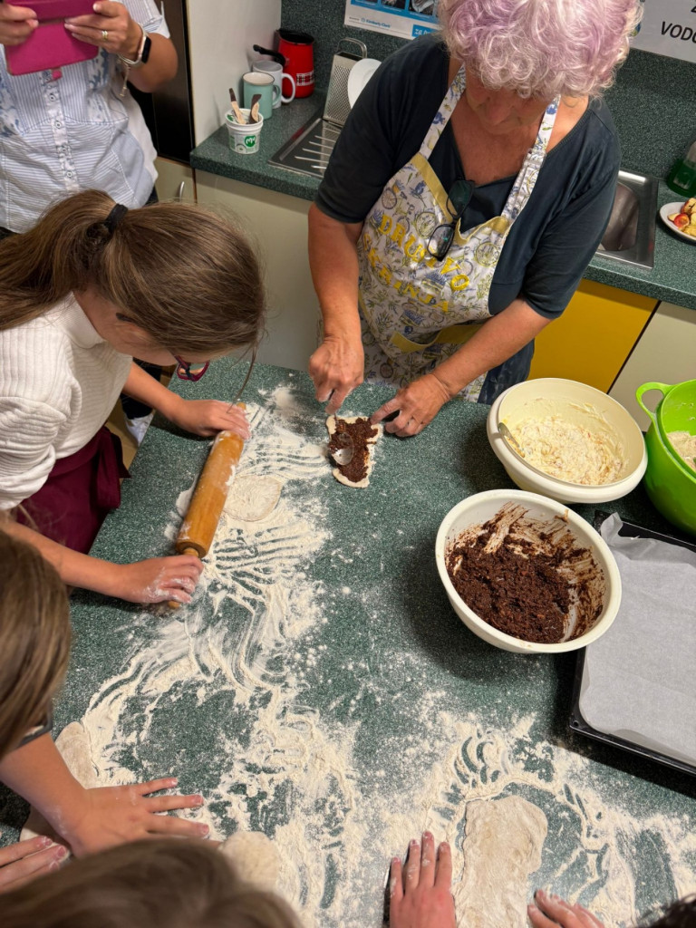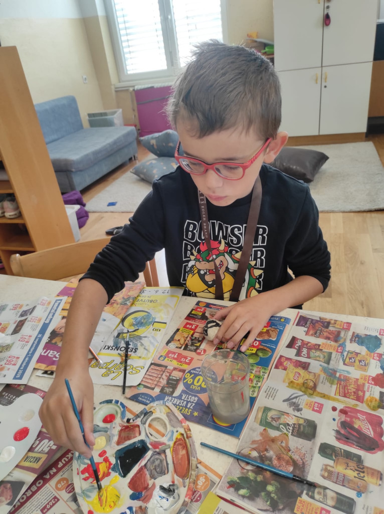 Učenci prilagojenega programa radi ustvarjamo, še raje pa imamo, ko zadiši po sladkem. V petek, 10. 10. 2025, smo združili oboje – ustvarjanje in peko. Poslikali smo kamenčke, ki bodo okraševali grobove in osrečili mimoidoče (kamen sreče). Prav tako pa smo pripravili sladke potičke in jih z veseljem pojedli. Utrinke dneva delimo spodaj.