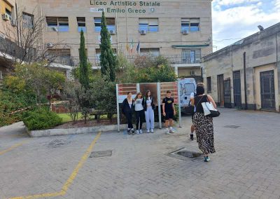 Današnji dan je bil namenjen spoznavanju italijanskega šolskega sistema in sodelovanju pri različnih delavnicah. Učenci vseh treh partnerskih držav so sodelovali v skupinskih delavnicah s področij grafičnega oblikovanja, likovne umetnosti in multimedije. Vsebine so bile povezane s skupnimi temami projekta: digitalna umetnost, enakost spolov, dediščina, delo za skupnost in jeziki.