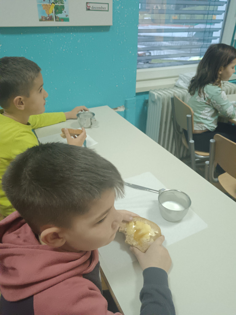 Tretji teden v novembru obeležujemo teden slovenske hrane, zato smo v petek, 21. 11. 2025, na Osnovni šoli Franja Malgaja Šentjur, organizirali Tradicionalni slovenski zajtrk, kot že mnogo let poprej. Kot vsako leto želimo poudariti uživanje slovenske hrane ter hkrati podpreti slovensko čebelarstvo in kmetijstvo. Učenci so jedli črni kruh, med, maslo, mleko in jabolka.