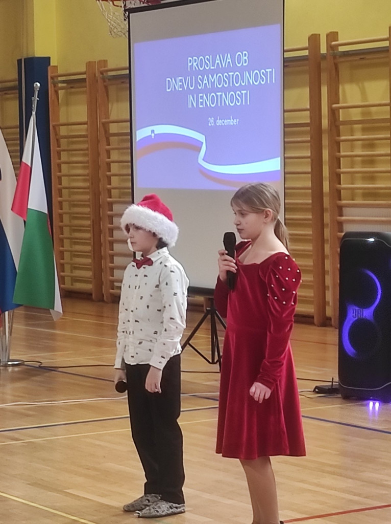 V torek, 23. decembra 2025, smo na naši šoli slavnostno obeležili slovenski državni praznik – dan samostojnosti in enotnosti, ki ga sicer praznujemo 26. decembra. Ta dan nas spominja na pomemben trenutek v zgodovini našega naroda, ko smo Slovenci z odločno večino na plebiscitu leta 1990 izrazili svojo voljo po samostojni Sloveniji.