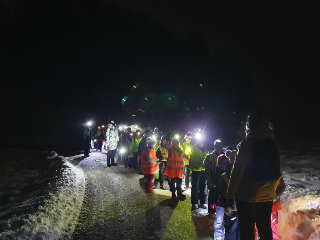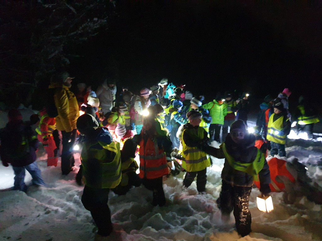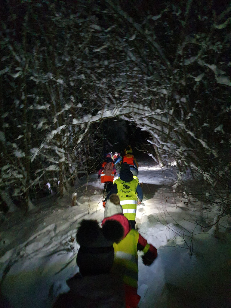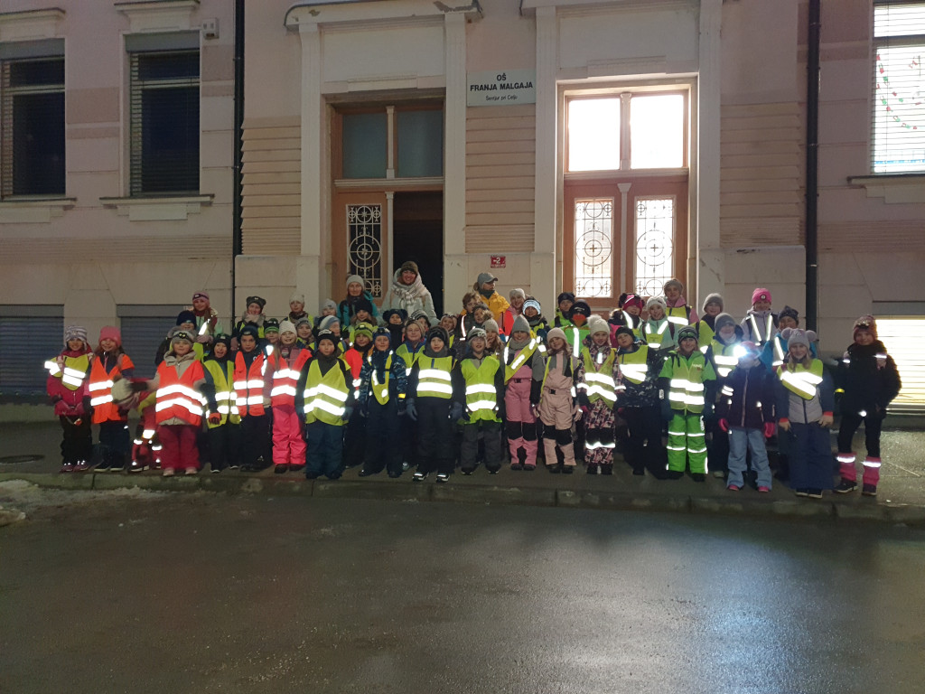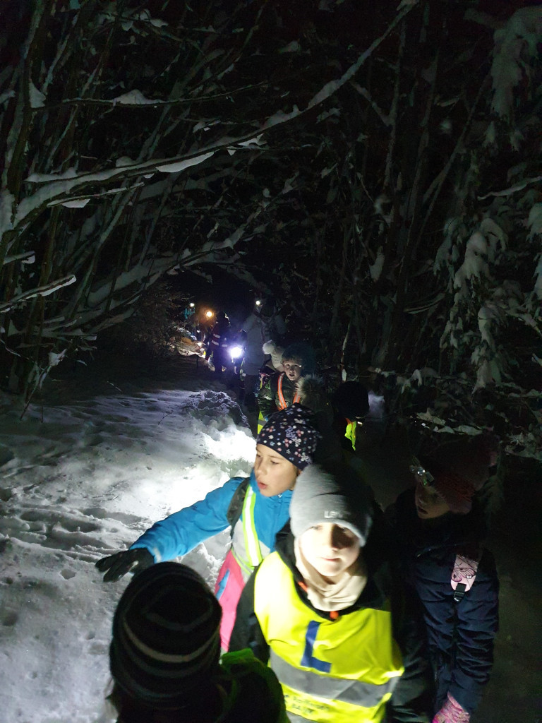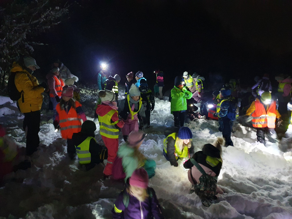 Ker nas je letošnja zima prijetno presenetila z obilico snega, smo se v sredo, 7. januarja 2026, z mladimi člani planinskega krožka odpravili na nočni pohod. Kar 48 učencev je s svetilkami, odsevnimi brezrokavniki in kresničkami raziskovalo okolico Šentjurja. Hodili smo po znanih poteh, ki pa so v snežnih razmerah izgledale popolnoma drugačne. Hoja po celem snegu ima svoj čar, a od nas zahteva tudi več napora, zato smo se še posebej razveselili postanka, kjer nas je kuhar Jani pocartal s toplim čajem in slastnimi piškoti. Iskreno se mu zahvaljujemo za prijetno presenečenje!