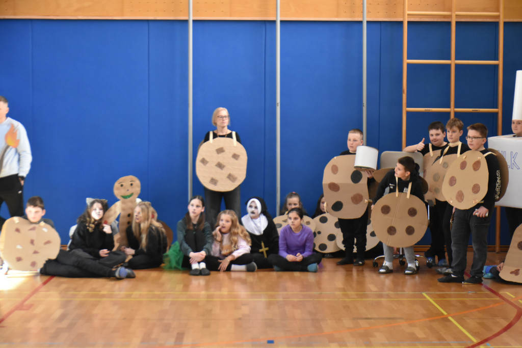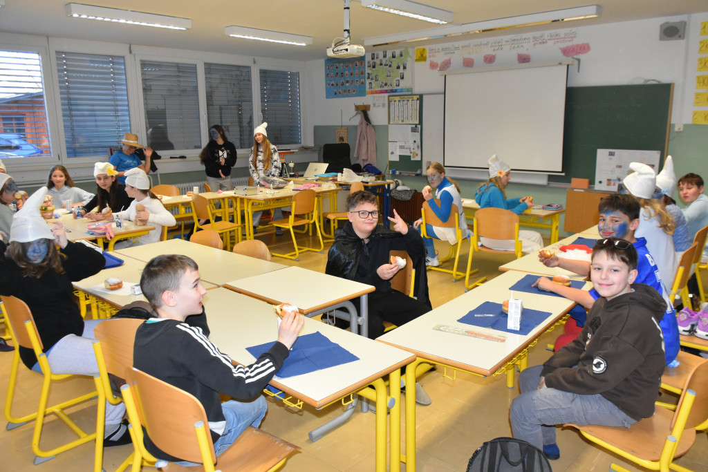 Sledila je malica, kjer seveda ni smelo manjkati krofov, in predstavitev mask po razredih.