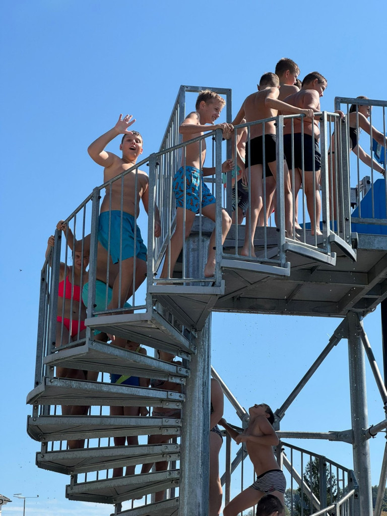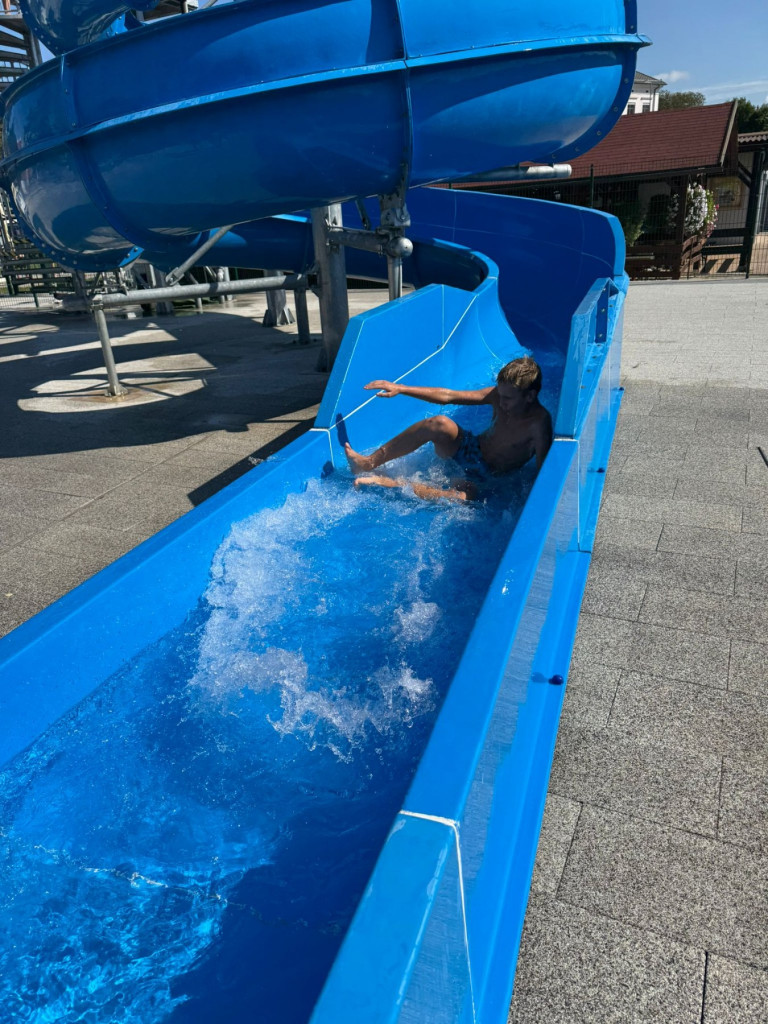 Sončno in toplo vreme je bilo kot naročeno za izvedbo našega prvega športnega dne. V petek, 5. 9. 2025 smo obiskali bazen v Šentjurju in preverili naše plavalne veščine. Dan smo izkoristili za čofotanje, plavanje, spuste po toboganu in skoke v vodo.