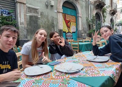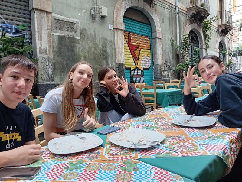 Učiteljica, ki dela z učencem s posebnimi potrebami, nam je predstavila italijanski srednješolski sistem, ki se začne z osnovno šolo (scuola primaria), ki traja pet let, sledi pa ji nižja srednja šola (scuola secondaria di primo grado), ki traja tri leta. Skupno torej učenci obiskujejo osem let obveznega šolanja. Po osnovni šoli sledi srednješolsko izobraževanje (scuola secondaria di secondo grado), ki traja pet let. Po petem letu dijaki opravljajo zaključni izpit – “esame di maturità”, s katerim pridobijo spričevalo o dokončani srednji šoli in možnost vpisa na univerzo ali višje strokovne šole. Italijanski in slovenski šolski sistem sta si podobna po dolžini obveznega šolanja in poudarku na dostopnosti izobraževanja za vse.