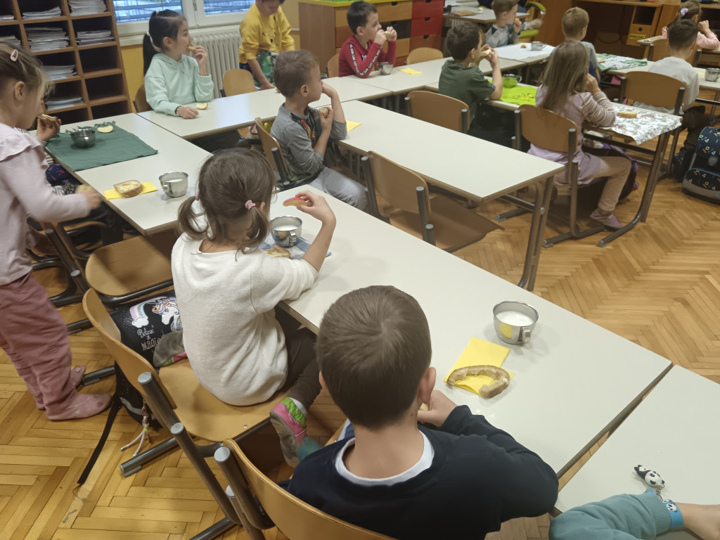 Tretji teden v novembru obeležujemo teden slovenske hrane, zato smo v petek, 21. 11. 2025, na Osnovni šoli Franja Malgaja Šentjur, organizirali Tradicionalni slovenski zajtrk, kot že mnogo let poprej. Kot vsako leto želimo poudariti uživanje slovenske hrane ter hkrati podpreti slovensko čebelarstvo in kmetijstvo. Učenci so jedli črni kruh, med, maslo, mleko in jabolka.