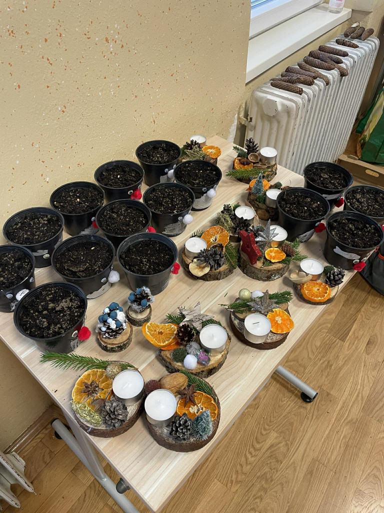 Učenci oddelka NIS smo si pričarali predpraznično vzdušje in izdelali izdelke, ki jih bomo ponudili na Miklavževem sejmu. Učenci so se pri izdelavi zelo potrudili in vsak je prispeval svoj košček ustvarjalnosti v skupni mozaik dobrih idej in razrednega duha. Želimo si, da bi našo stojnico z radovednostjo obiskali in prispevali dobrodelni prispevek, s katerim si bomo olajšali sofinanciranje nadstandardnih dejavnostih v oddelkih NIS.