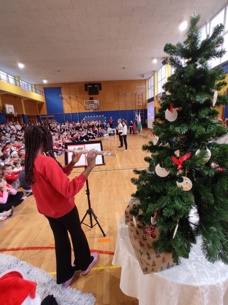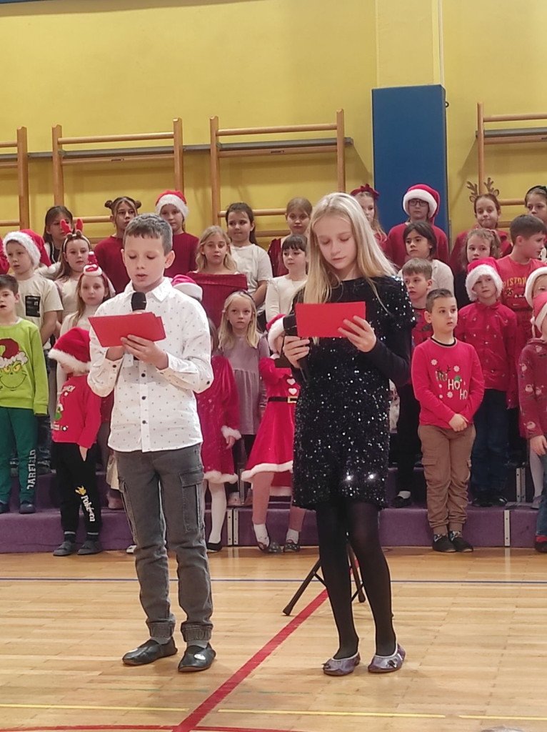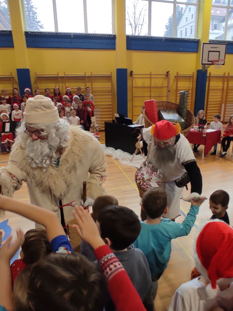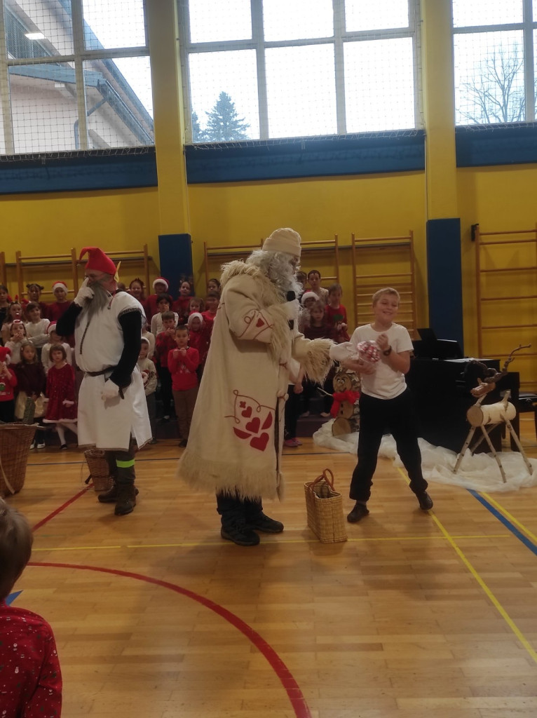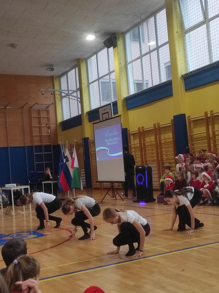 Učenci razredne stopnje so za ta poseben dan pripravili prav posebno prireditev, ki so jo vodili Anastazija Frece, Ana Gorišek Mauer, Kai Urleb Pečar in Leon Mansutti. Prireditev so obogatili plesni nastopi in glasbena spremljava, s svojim ubranim petjem pa nas je navdušil otroški pevski zbor. Sledilo je prav posebno presenečenje – obisk dedka Mraza, ki je razveselil vse, tako učence kot učitelje. Praznični dan smo zaključili s predstavitvijo oddelčnih plesov pod mentorstvom plesnih učiteljev Force Plesnega vala Celje.