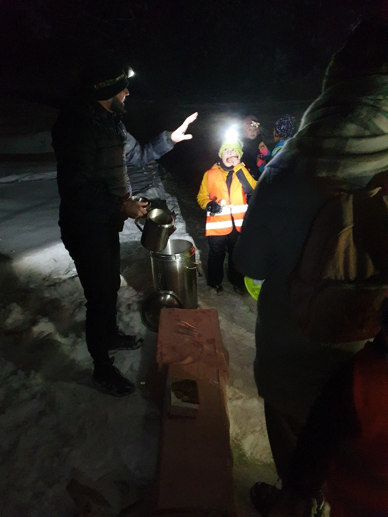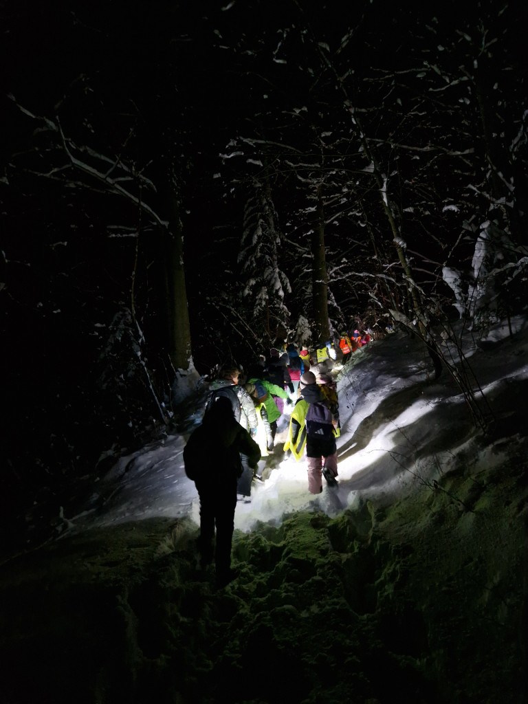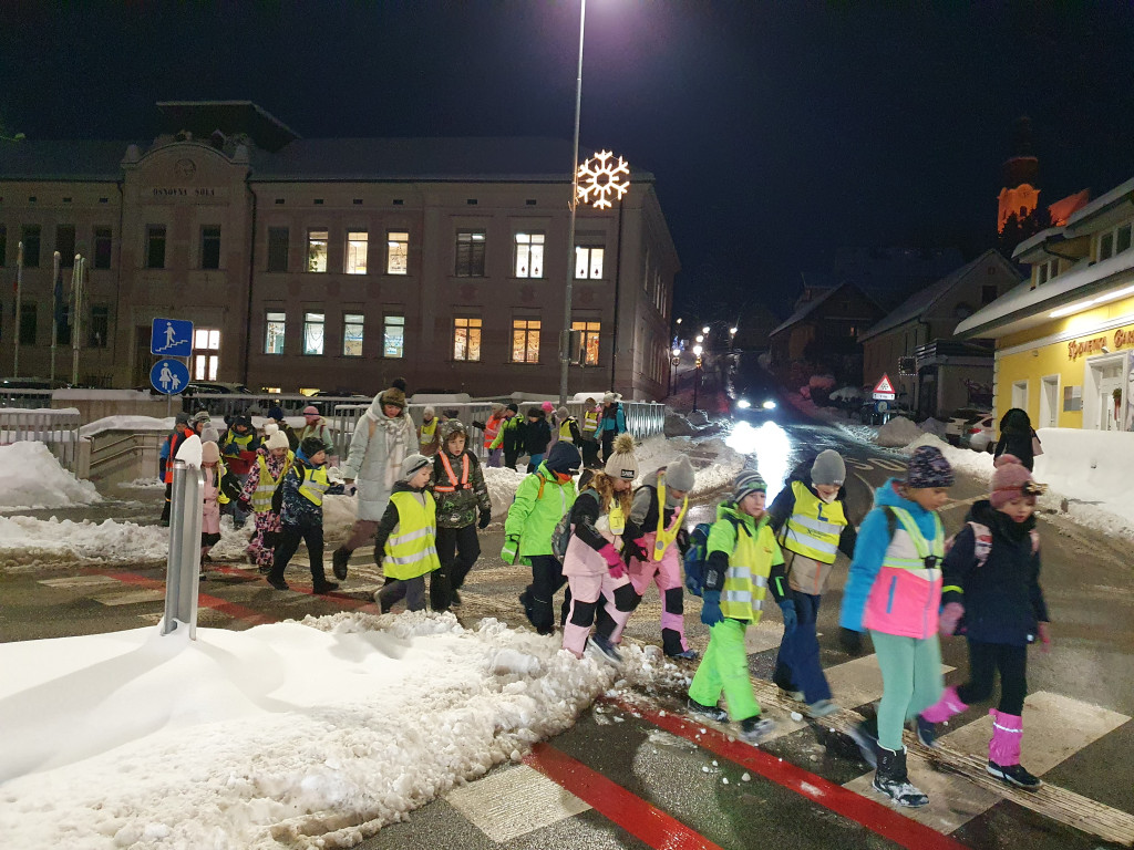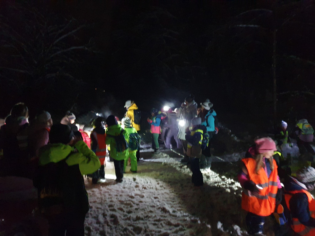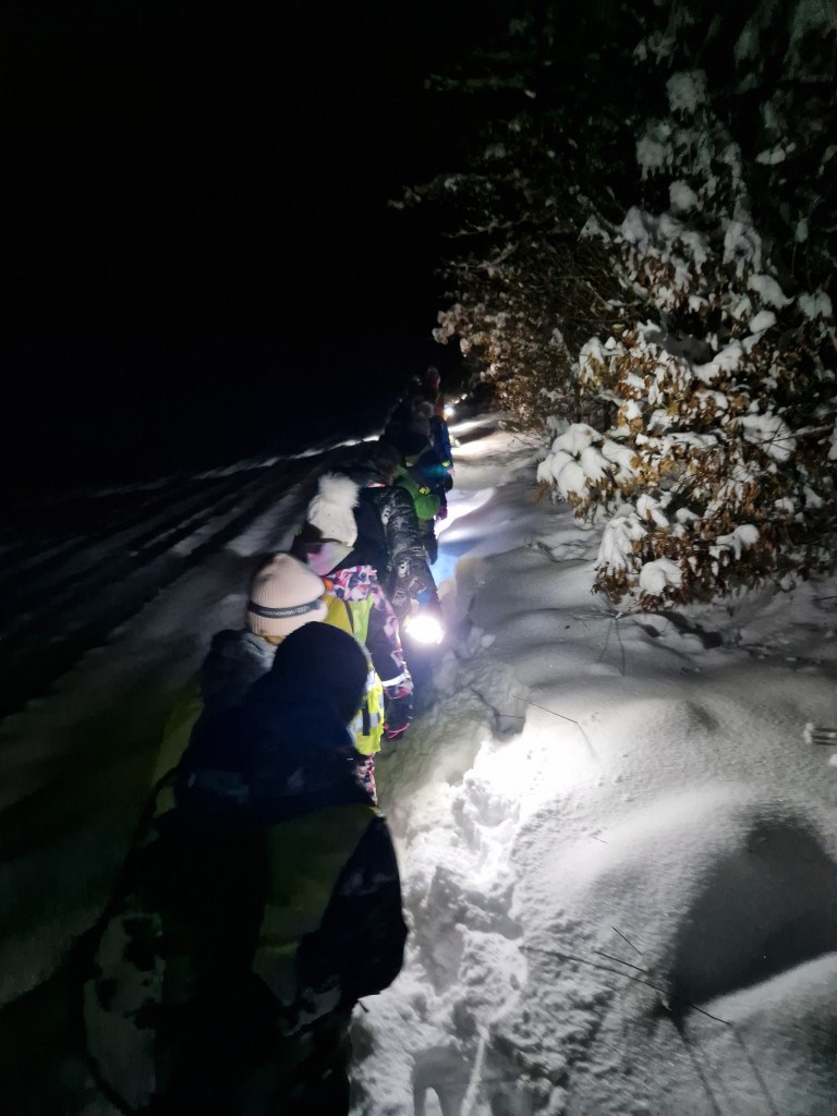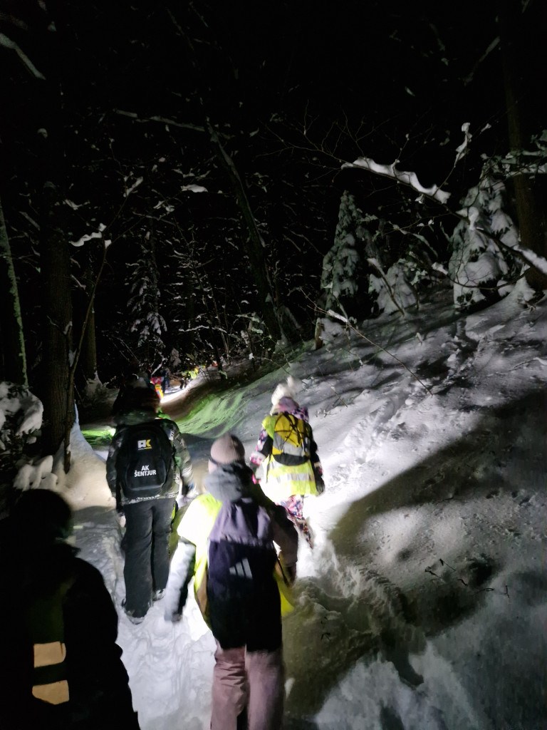 Ker nas je letošnja zima prijetno presenetila z obilico snega, smo se v sredo, 7. januarja 2026, z mladimi člani planinskega krožka odpravili na nočni pohod. Kar 48 učencev je s svetilkami, odsevnimi brezrokavniki in kresničkami raziskovalo okolico Šentjurja. Hodili smo po znanih poteh, ki pa so v snežnih razmerah izgledale popolnoma drugačne. Hoja po celem snegu ima svoj čar, a od nas zahteva tudi več napora, zato smo se še posebej razveselili postanka, kjer nas je kuhar Jani pocartal s toplim čajem in slastnimi piškoti. Iskreno se mu zahvaljujemo za prijetno presenečenje!