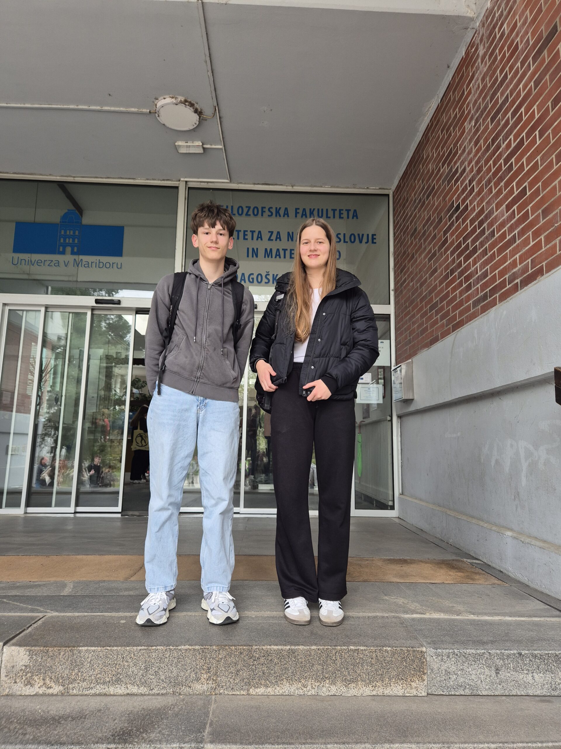 V petek, 10. 4. 2026, je na Filozofski fakulteti v Mariboru potekalo državno tekmovanje v znanju slovenščine za Vodnikovo priznanje. Osrednja tema tekmovanja je bila slovenščina med slovanskimi jeziki. Našo šolo sta zastopala Maj Krč iz 8. b in Manca Lukanc iz 9. b, ki sta s pridnim delom in izjemnim znanjem slovenščine osvojila zlato priznanje. Maj se je s svojim dosežkom uvrstil celo na 3. mesto, Manca pa na 15. mesto v državi, kar je še dodaten uspeh. Obema učencema iskreno čestitamo! Bravo!!!!